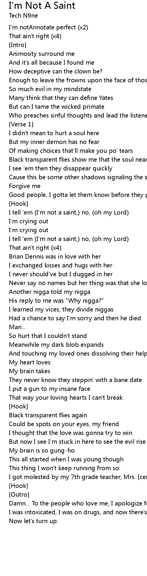 I tell 'em (I'm not a saint,) no, (oh my Lord) |