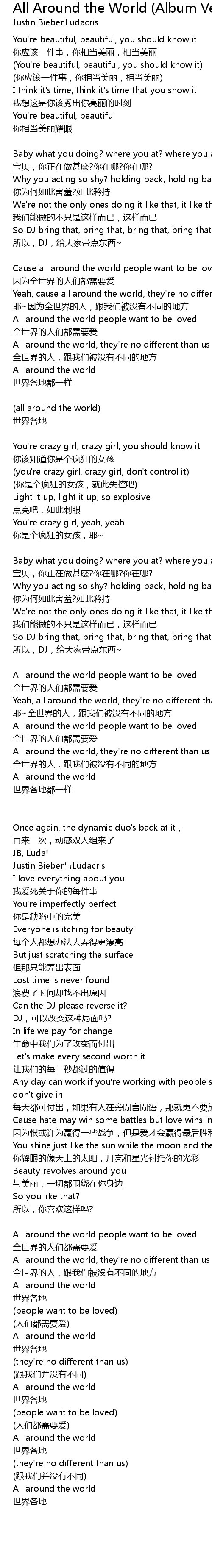 | yīn wèi quán shì jiè de rén men dōu xū yào ài | |
