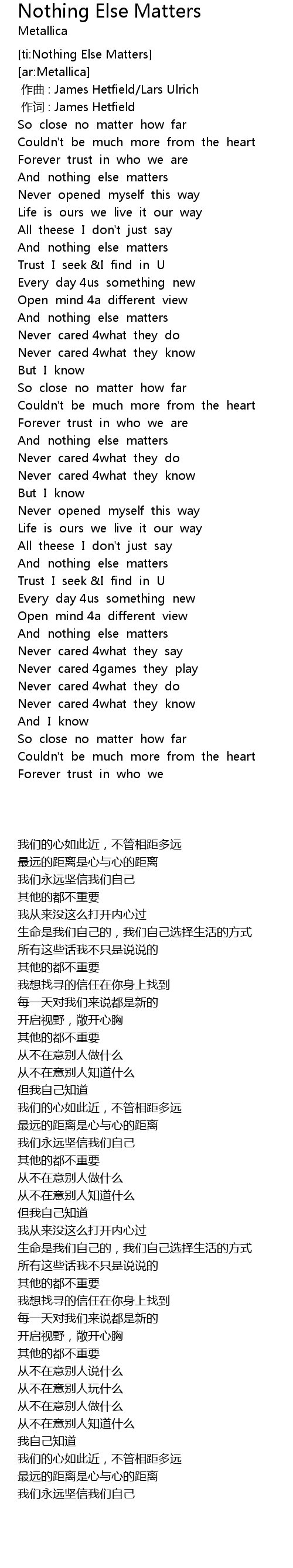 | [01:33.500] | And nothing else matters |