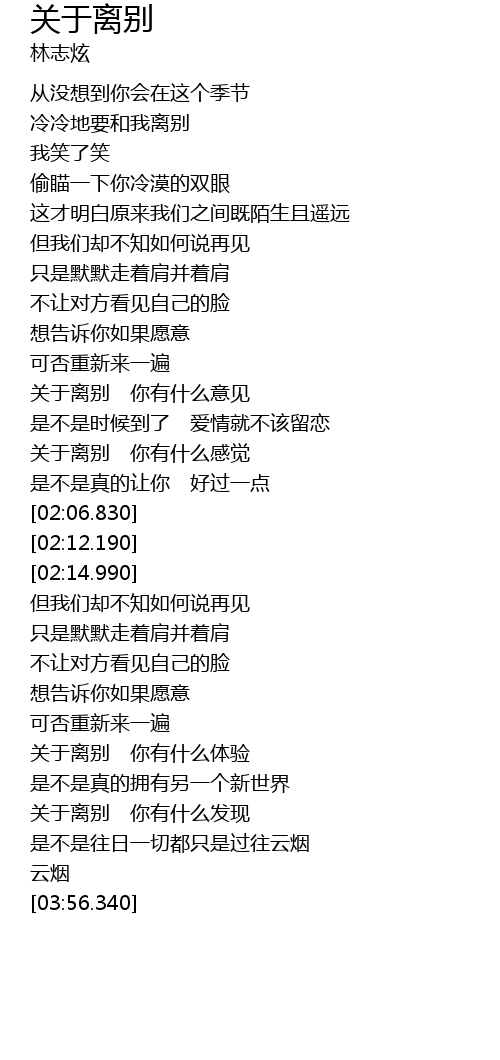 | [01:42.850] | 关于离别 你有什么感觉 |