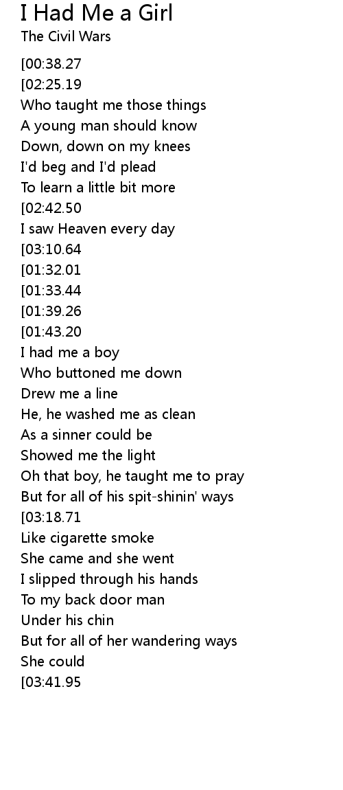 | [00:49.96][01:32.01][02:54.57][03:11.90][03:20.79] |