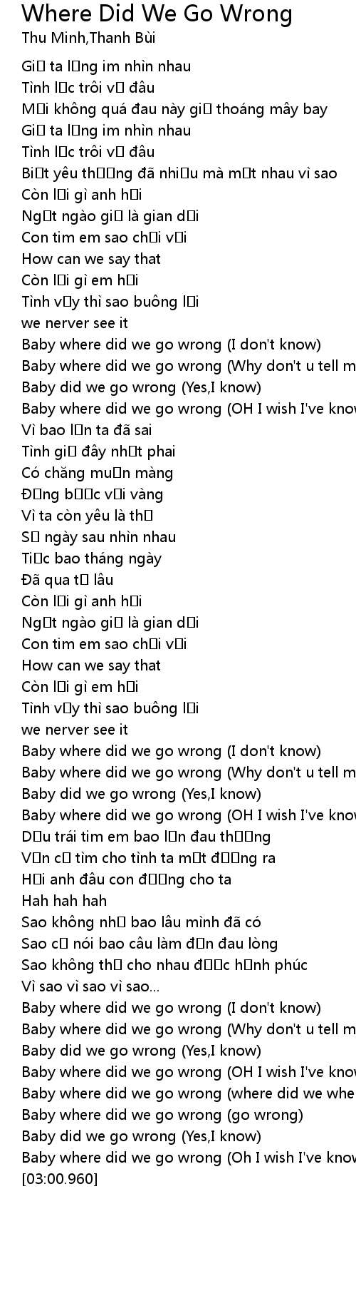 | [02:47.280] | Baby where did we go wrong go wrong |