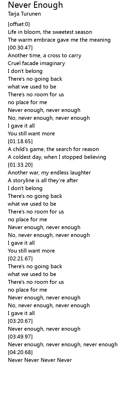 Never enough, never enough |