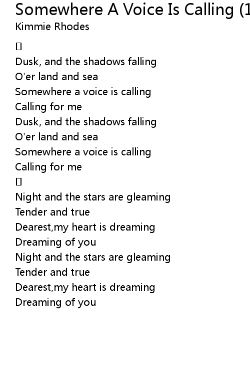 | [01:22.81] | Somewhere a voice is calling |