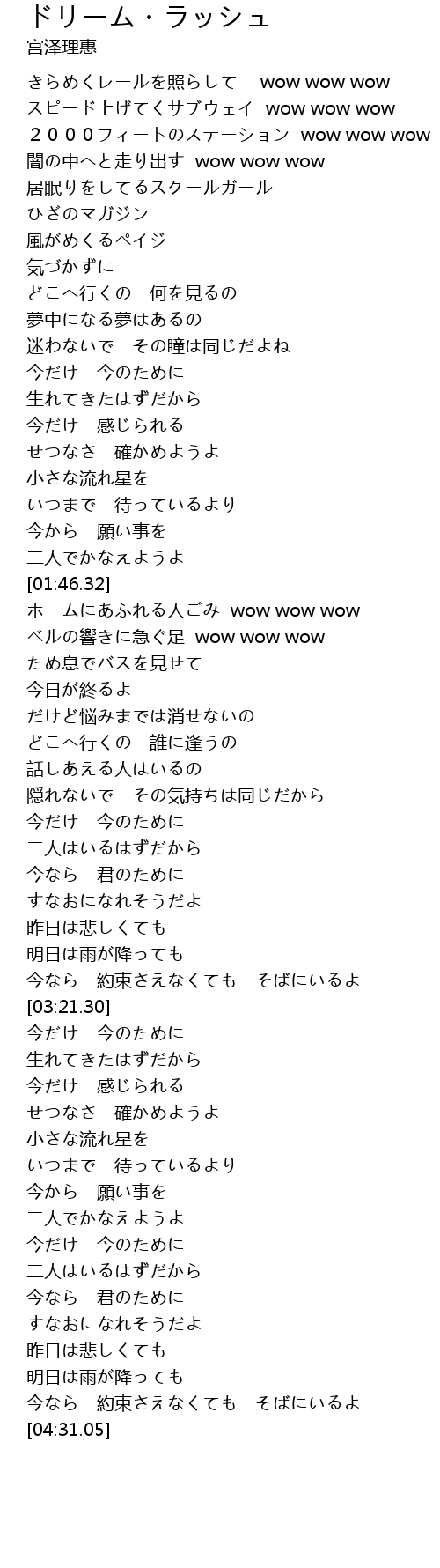 | [02:04.23] | ホームにあふれる人ごみ wow wow wow |