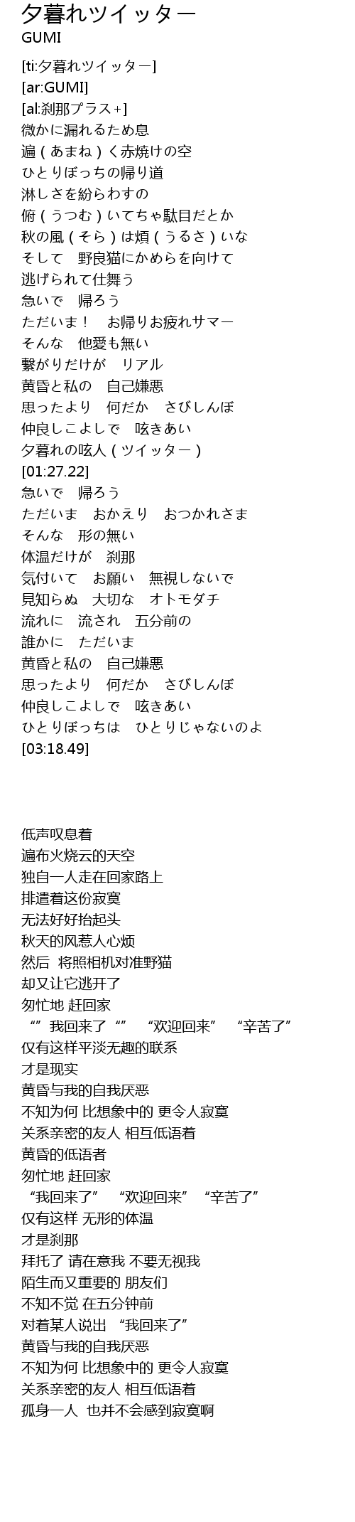 | [01:20.69] | 夕暮れの呟人(ツイッター) |