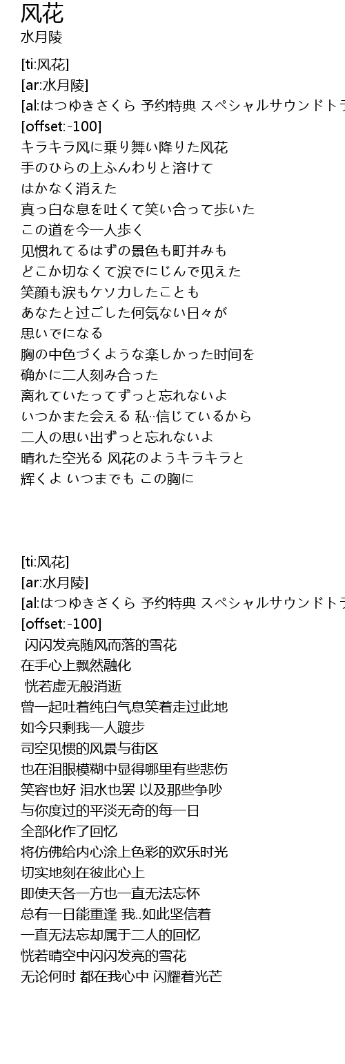 | [00:38.99] | キラキラ风に乗り舞い降りた风花 |