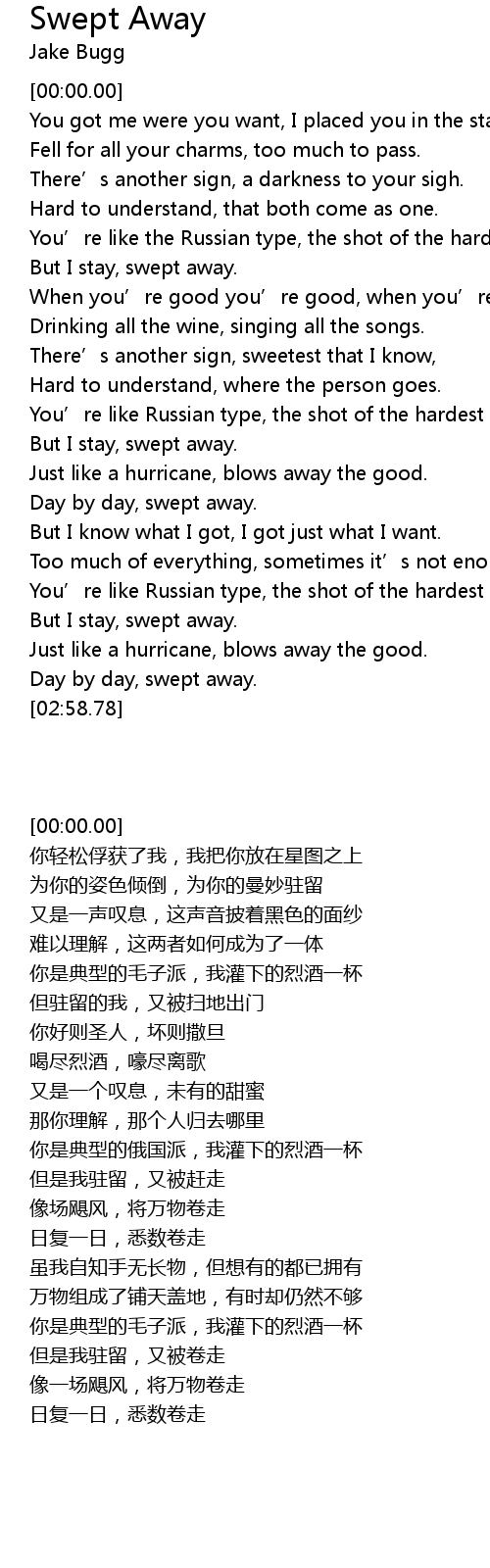 | [02:44.97] | Just like a hurricane, blows away the good. |