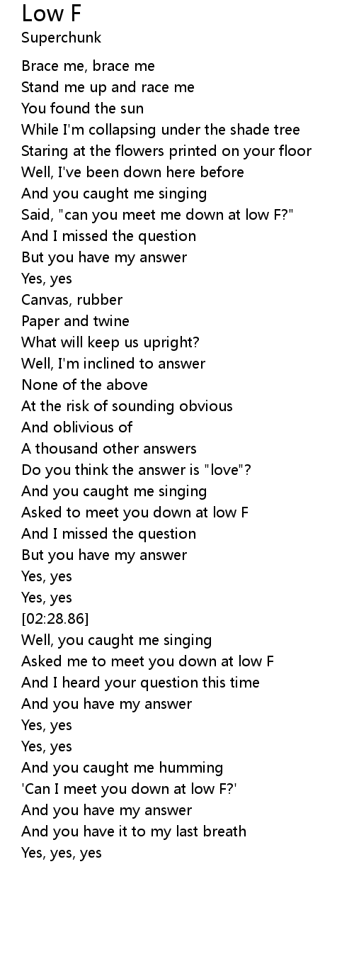 Asked to meet you down at low F |