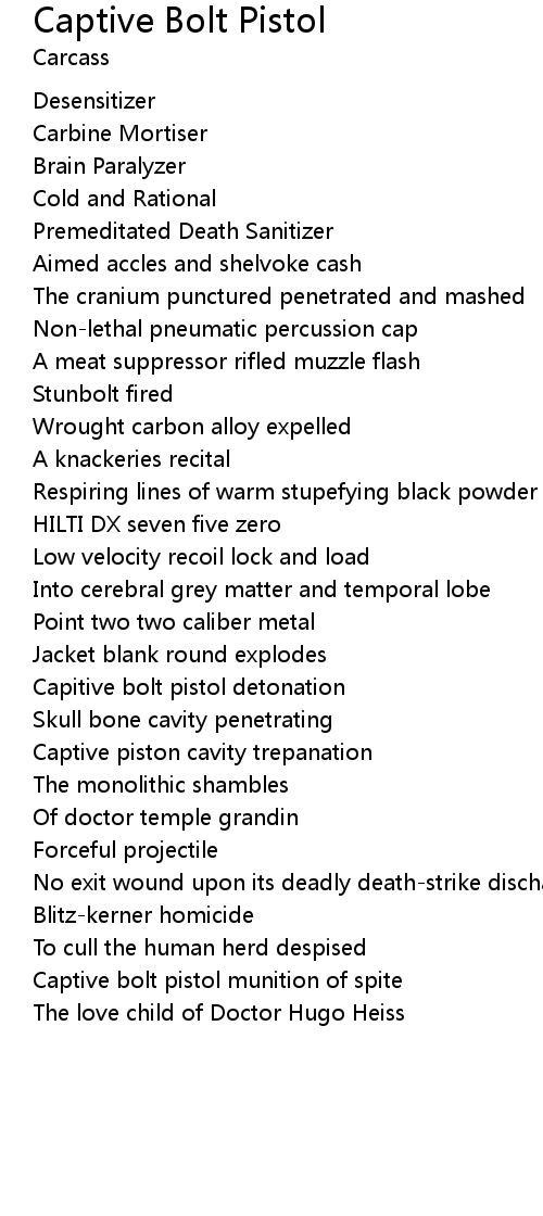 Captive bolt pistol munition of spite |