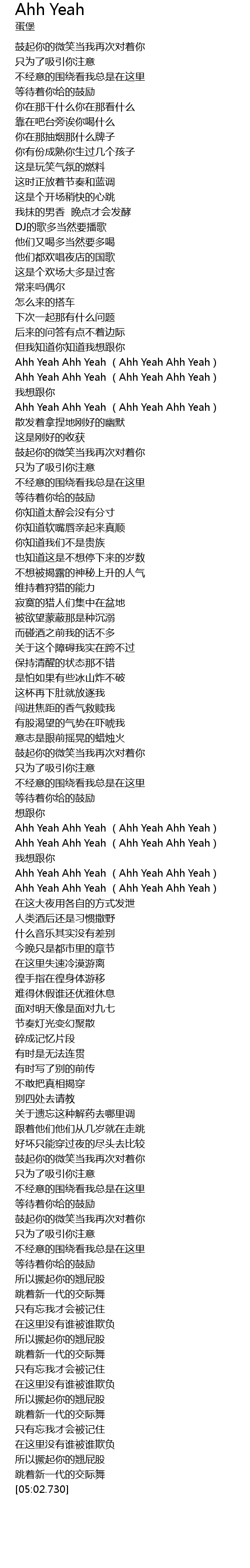 | [02:55.210] | Ahh Yeah Ahh Yeah (Ahh Yeah Ahh Yeah) |