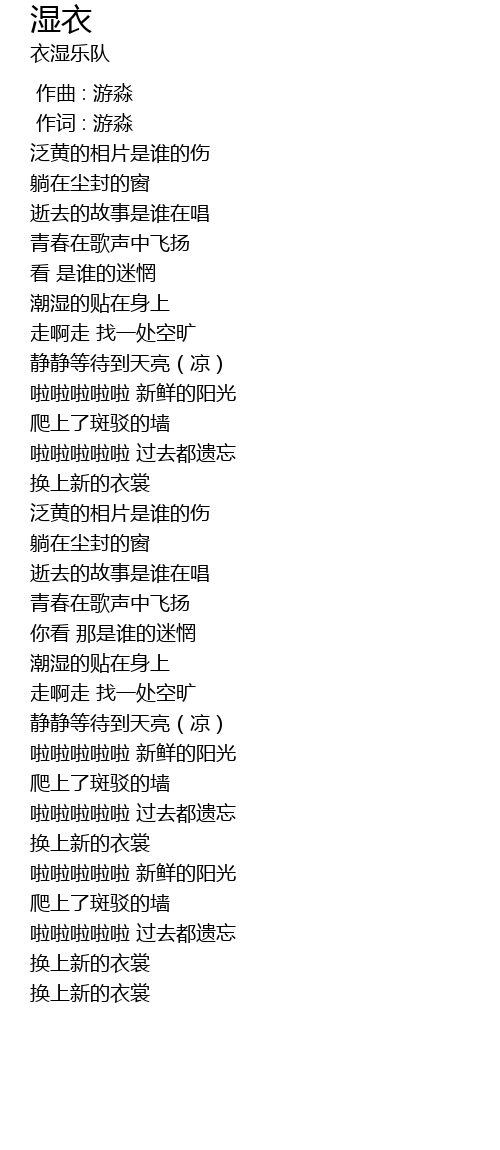 | [01:03.60] | 潮湿的贴在身上 |