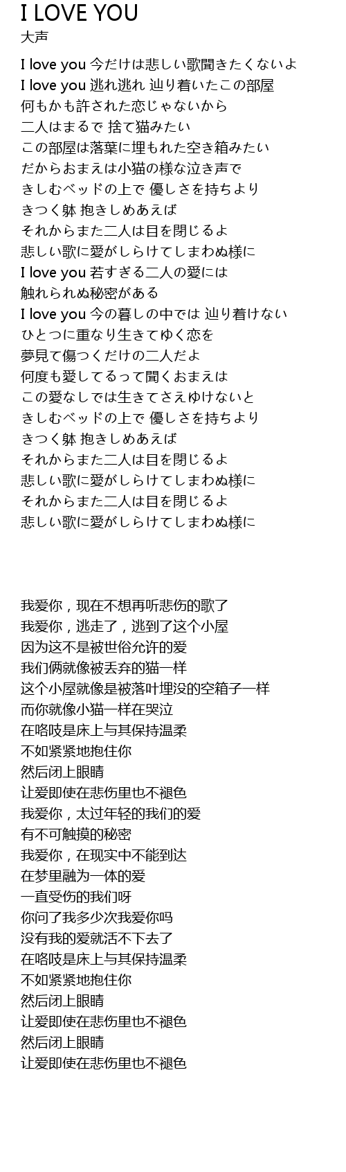 | [00:16.160] | I love you 今だけは悲しい歌聞きたくないよ |