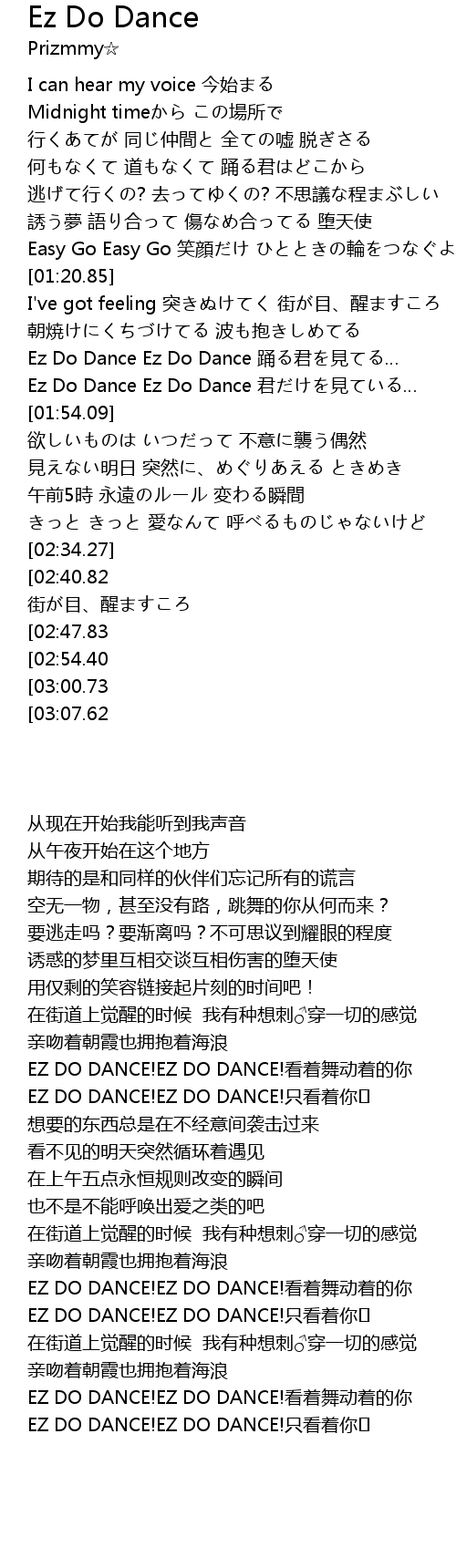 | [03:54.31][03:00.73] | Ez Do Dance Ez Do Dance 君だけを見ている… |