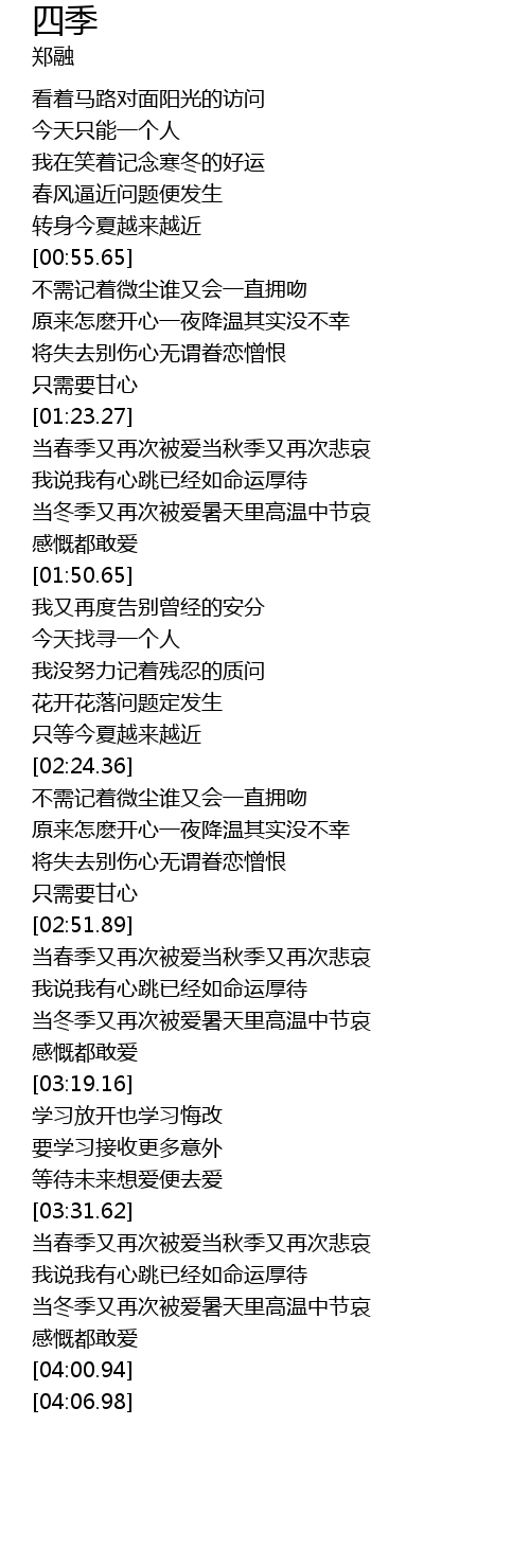 | [03:05.65] | 当冬季又再次被爱暑天里高温中节哀 |