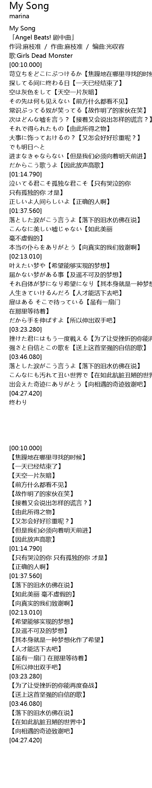 | [00:02.000] | 「Angel Beats! 剧中曲」 |