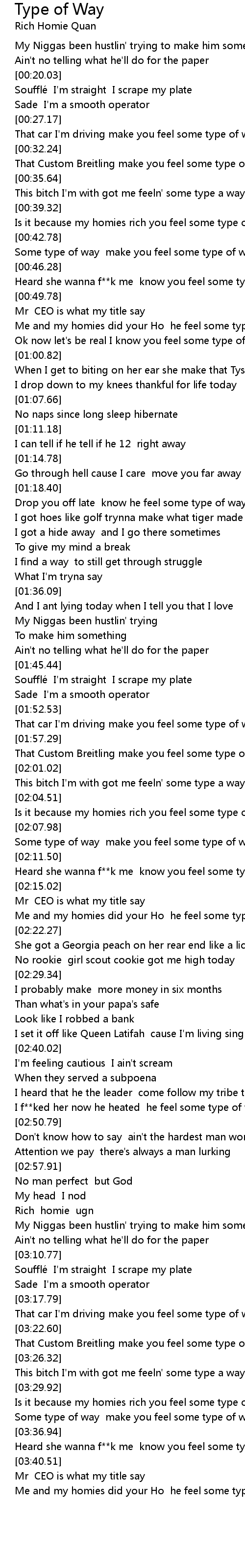 | [03:27.17] | This bitch I'm with got me feeln' some type a way |