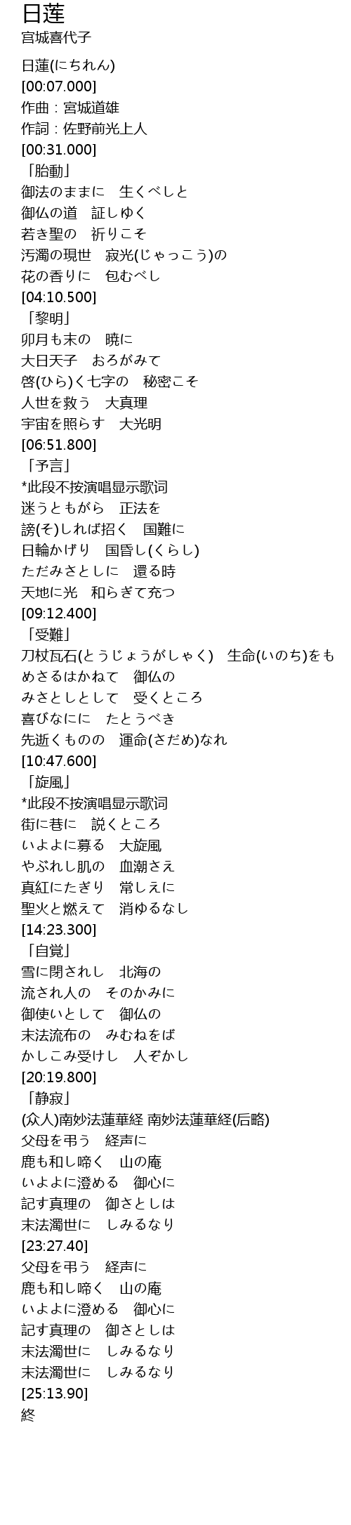 | [22:12.900] | (众人)南妙法蓮華経 南妙法蓮華経(后略) |