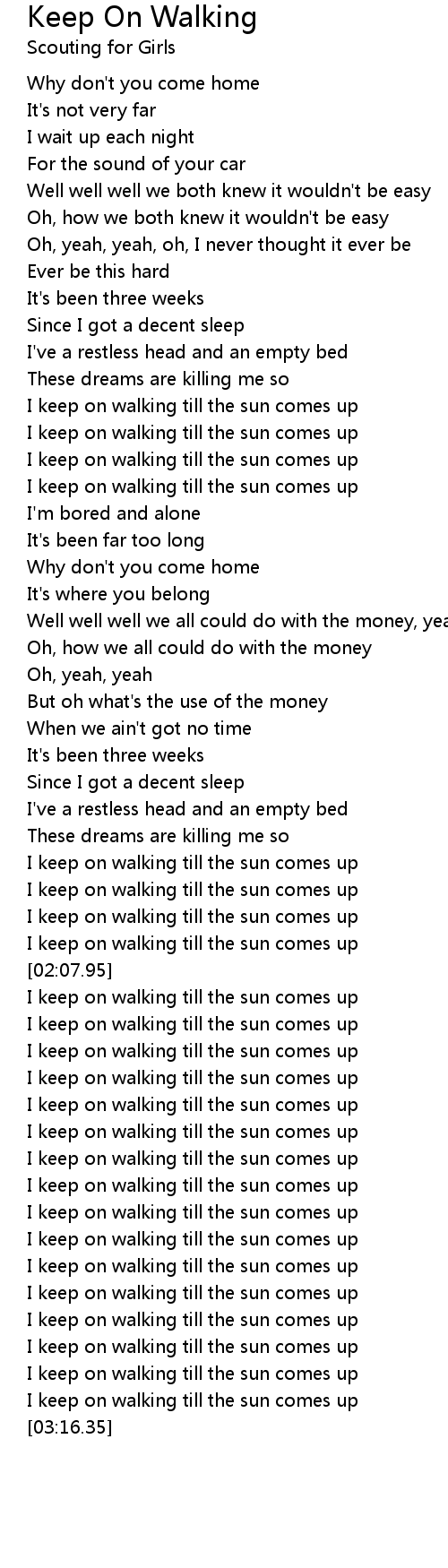 I keep on walking till the sun comes up |