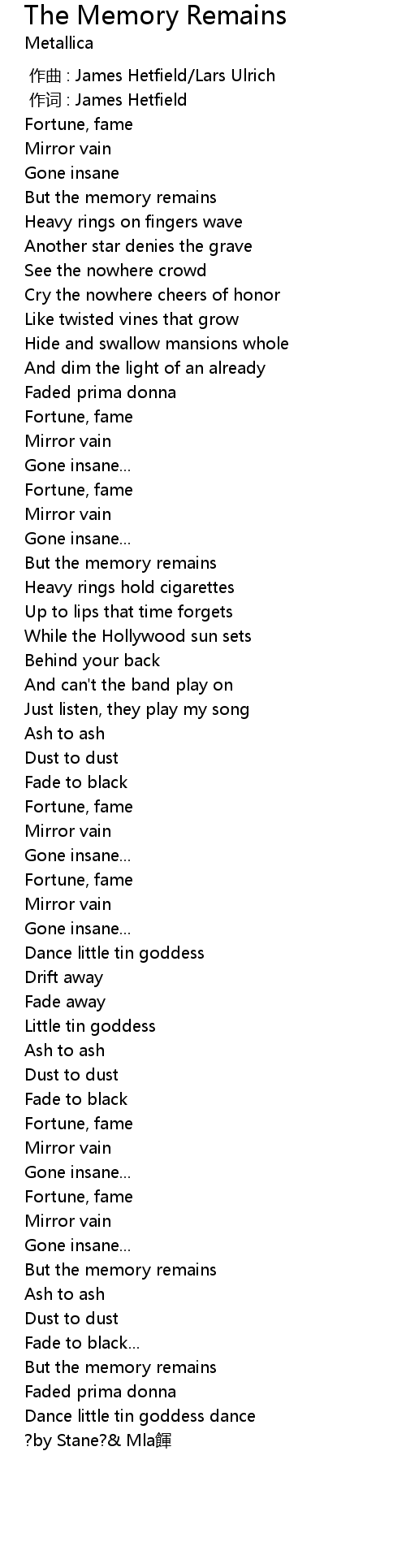 | Song | The Memory Remains |