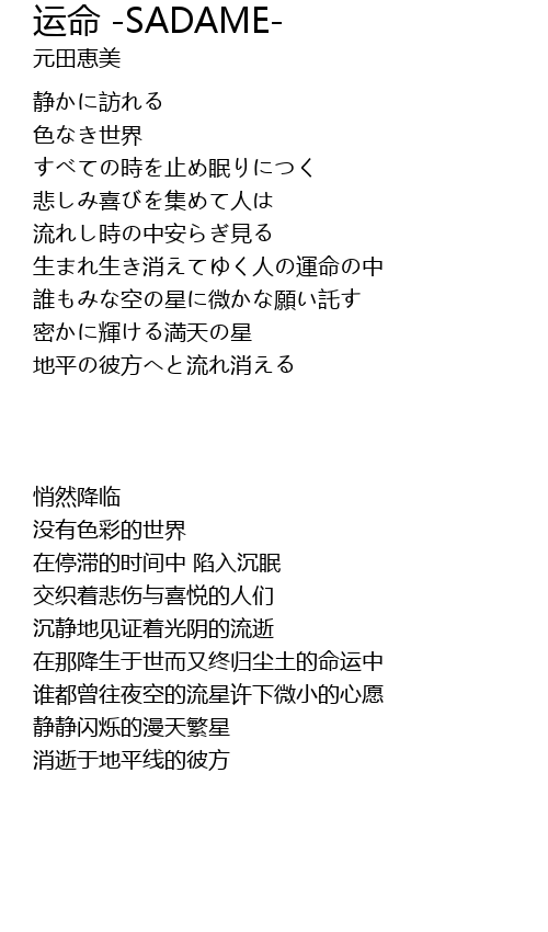 | [00:50.87] | 生まれ生き消えてゆく人の運命の中 |