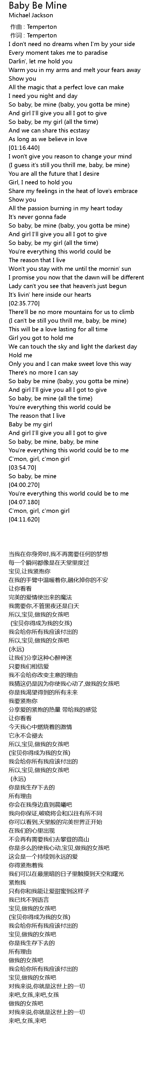 | [01:59.830] | So baby, be mine (baby, you gotta be mine) |