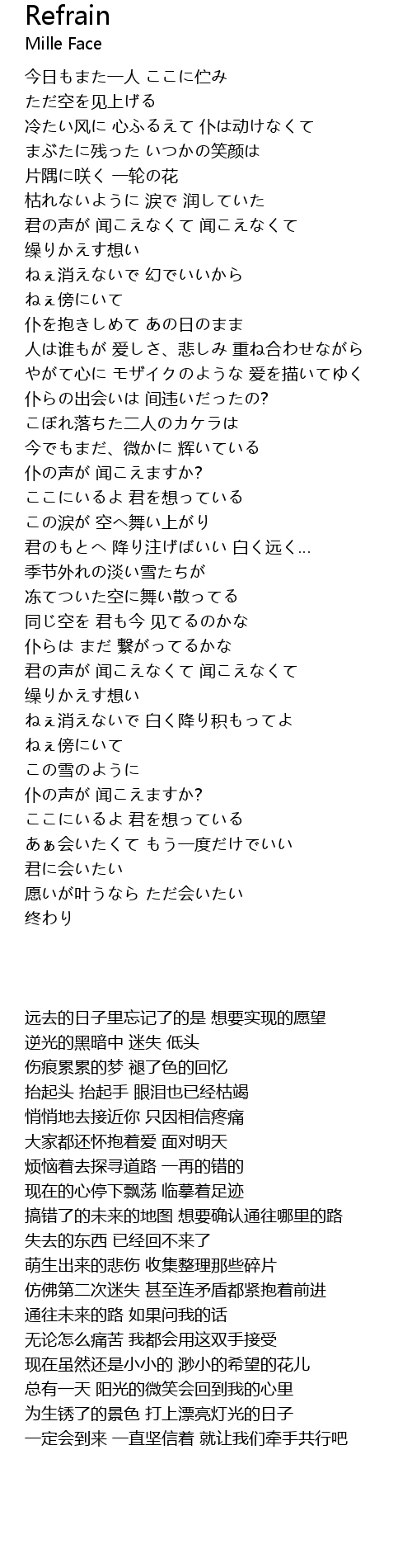 冷たい风に 心ふるえて 仆は动けなくて |