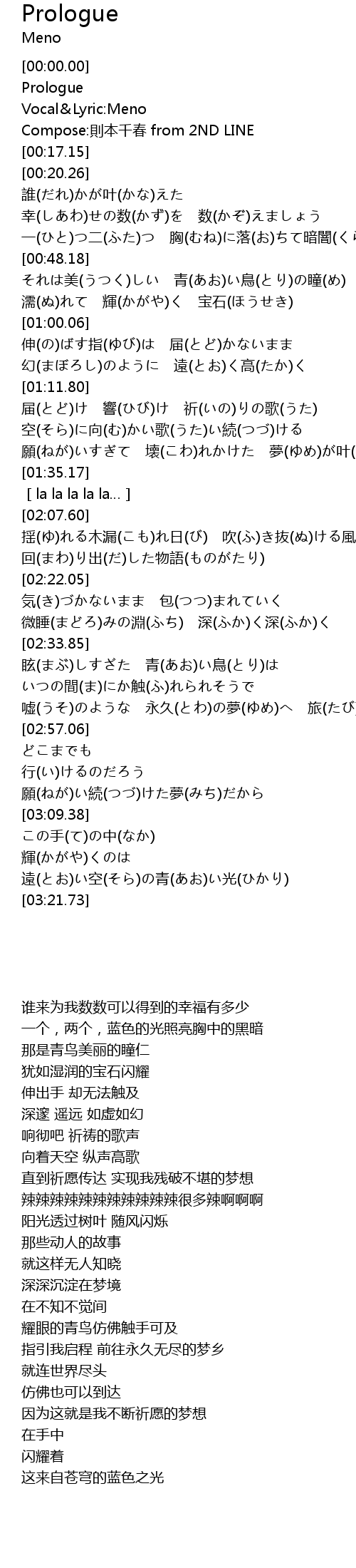| [00:03.12] | Prologue |