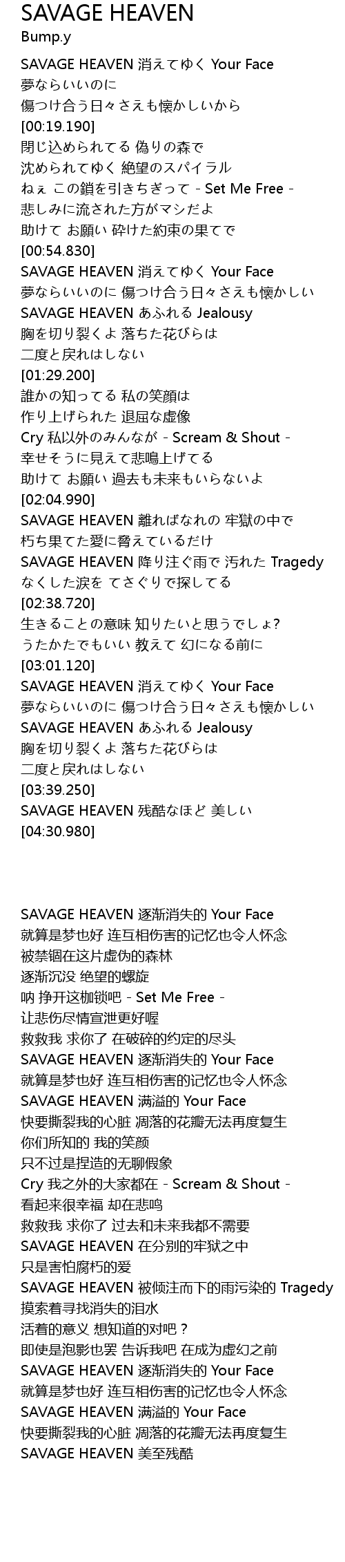 | [04:14.690] | SAVAGE HEAVEN 残酷なほど 美しい |