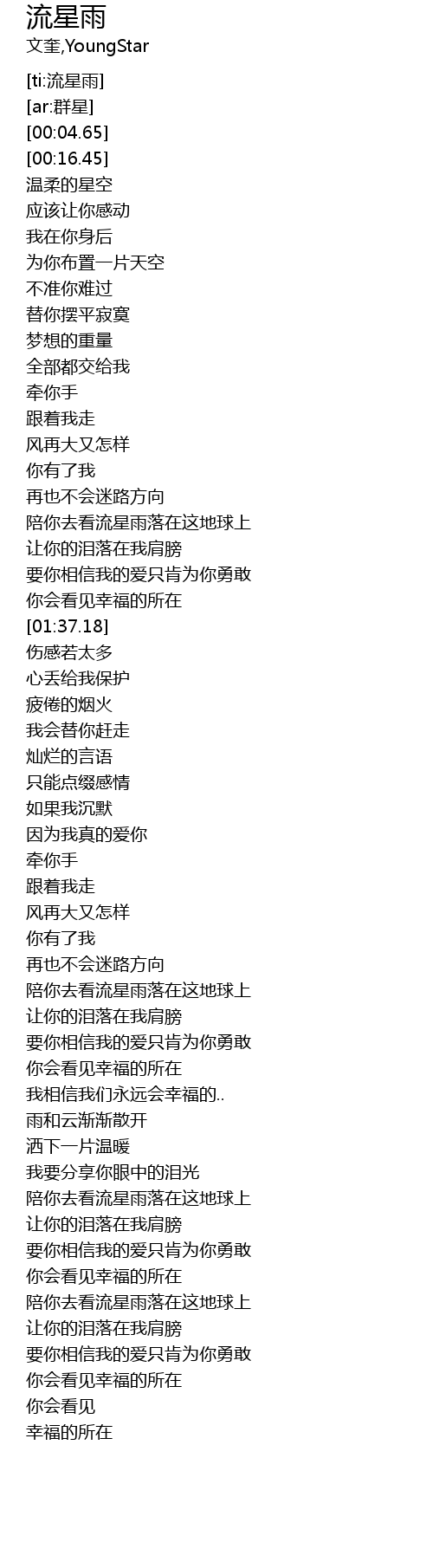 | [03:17.95] | 陪你去看流星雨落在这地球上 |