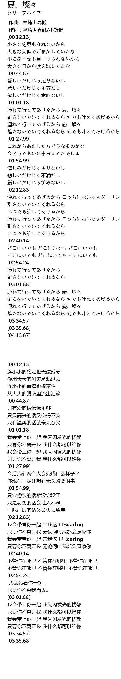 | [01:14.46] | 連れて行ってあげるから 憂、燦々 |