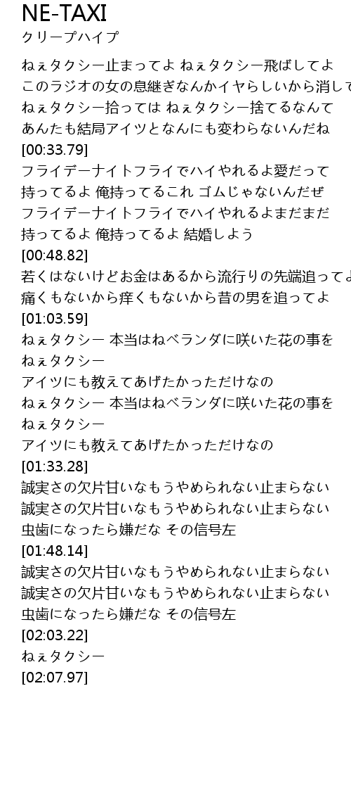 | [02:04.08] | ねぇタクシー |