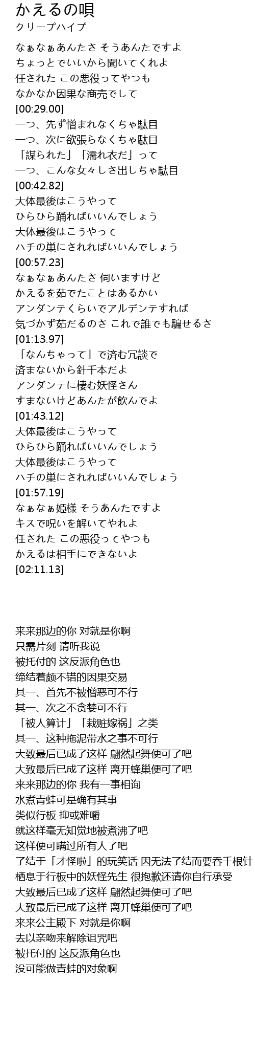 | [01:01.24] | かえるを茹でたことはあるかい |