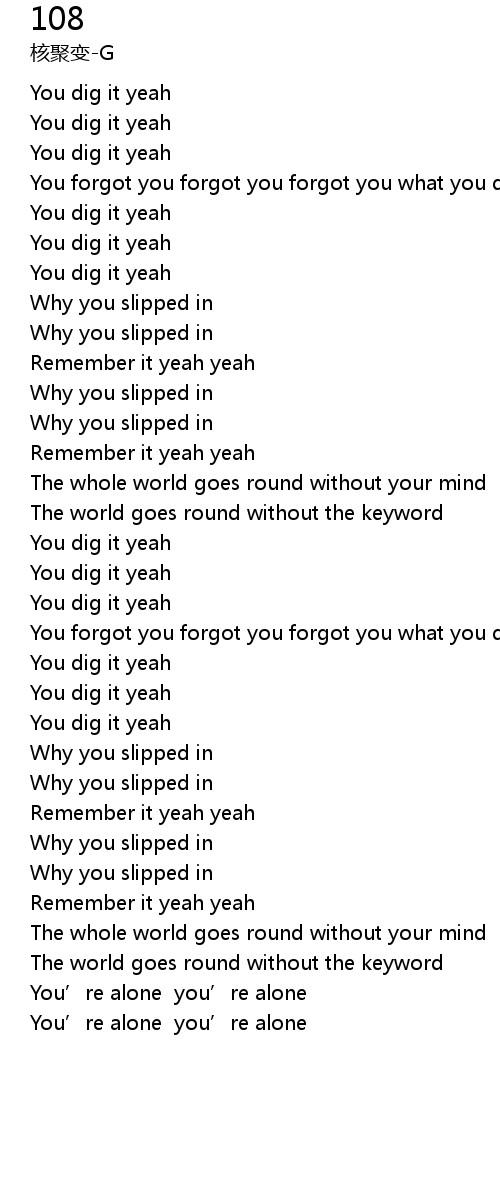 | [01:53.01] | You forgot you forgot you forgot you what you done |