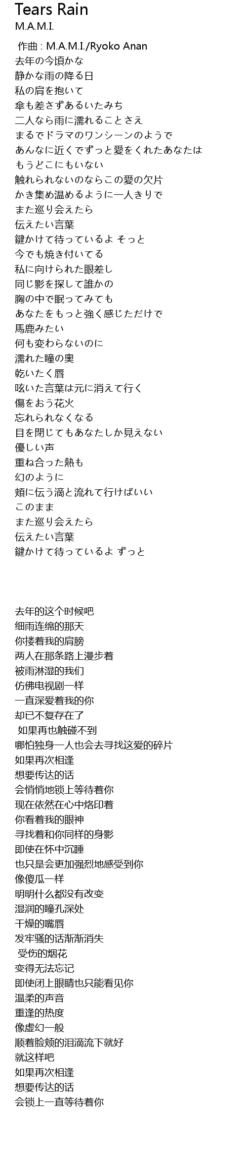 | [00:00.000] | zuo qu : M. A. M. I. Ryoko Anan |