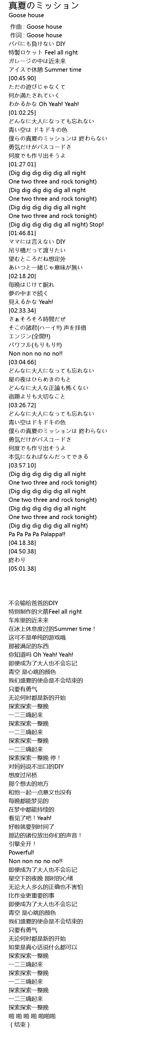 | [01:32.84] | (Dig dig dig dig dig all night |