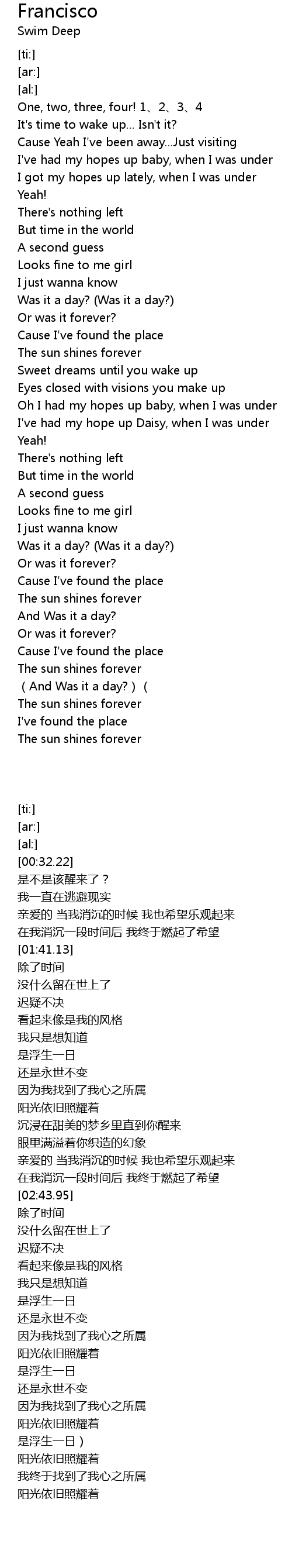 | [00:32.22] | One, two, three, four! 1 2 3 4 |