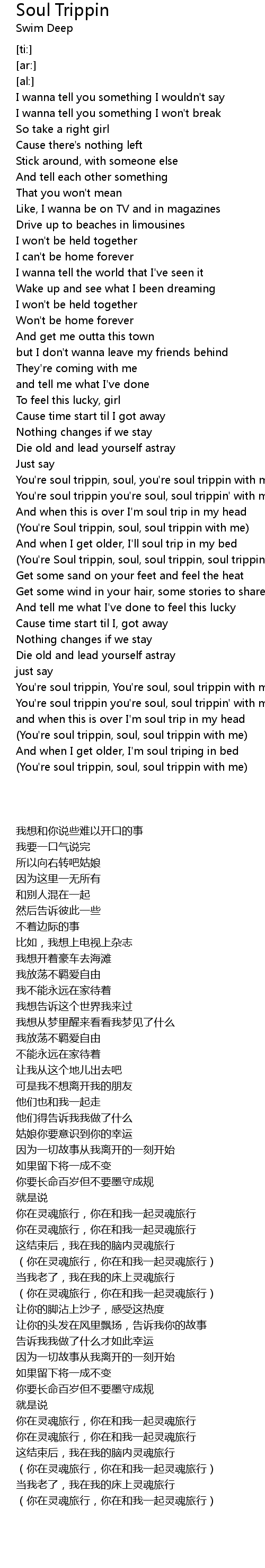 and when this is over I'm soul trip in my head |