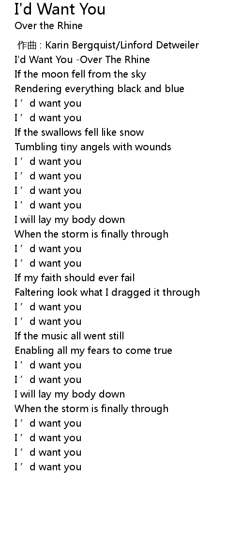 | [00:00.391] | I'd Want You -Over The Rhine |