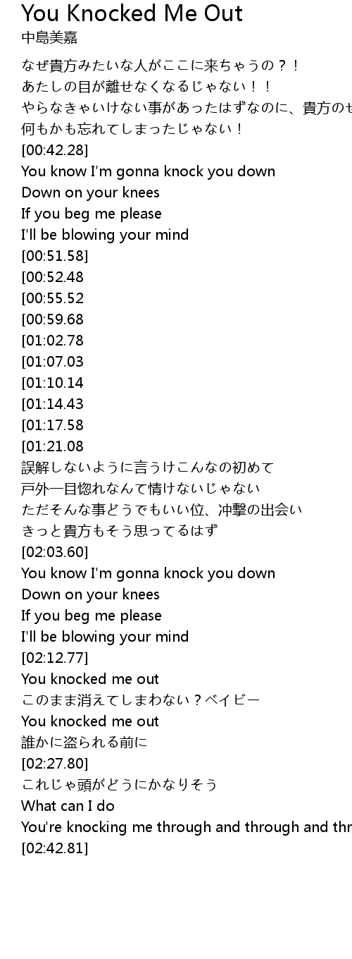 | [00:15.41] | なぜ貴方みたいな人がここに来ちゃうの?! |