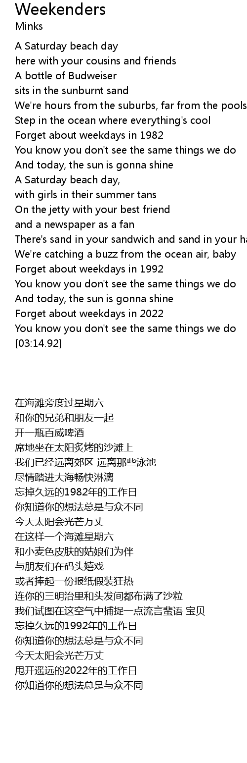 | [00:18.28] | A Saturday beach day |