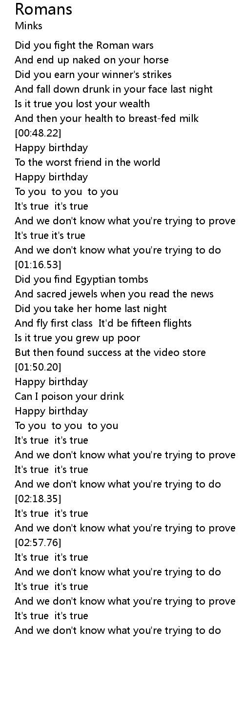 | [02:51.68] | It's true it's true |