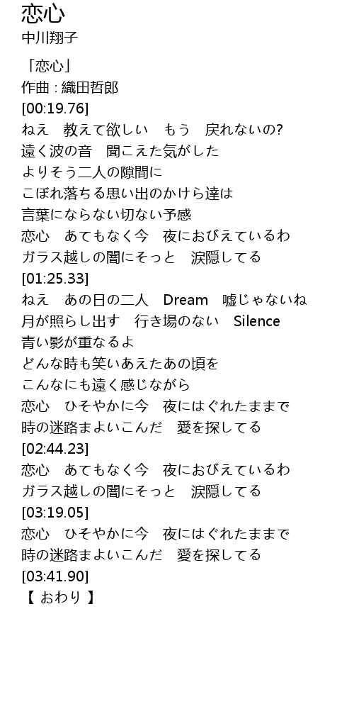 | [00:01.76] | 「恋心」 |