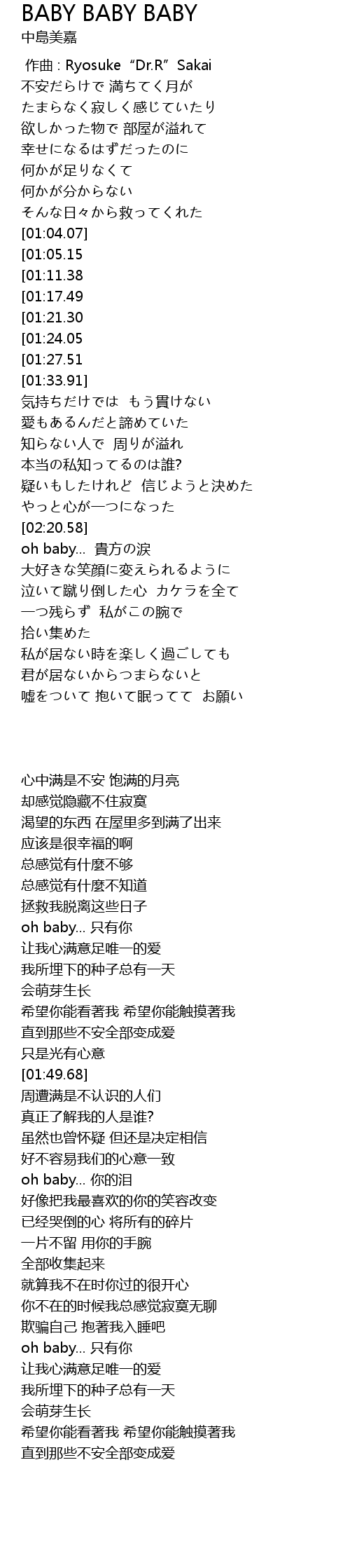 | [03:16.51][01:05.15] | oh baby... 貴方だけが |