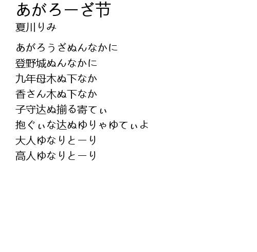 | Song | あがろーざ节 |
