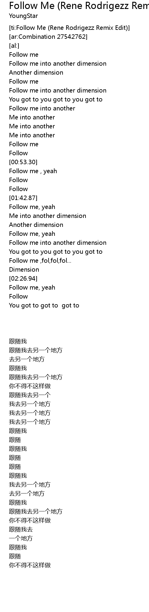 [ti:Follow Me (Rene Rodrigezz Remix Edit)] |