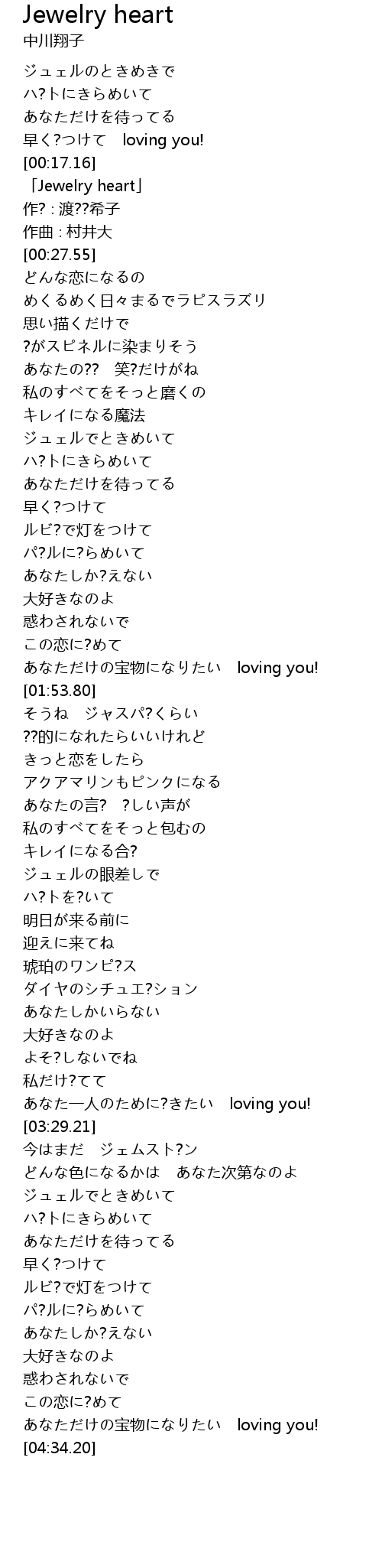 | [00:19.55] | 「Jewelry heart」 |