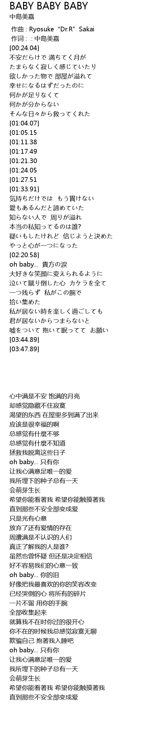 | [00:01.00] | 作词 : ∶中島美嘉 |