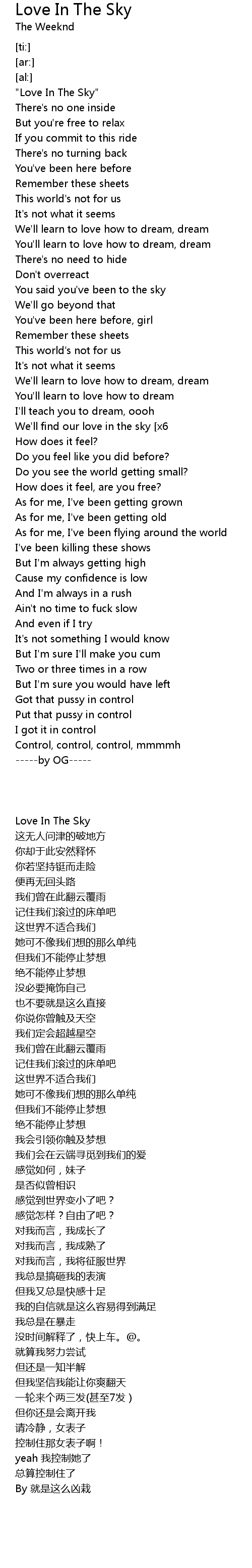 | [02:15.62]We'll find our love in the sky [x6] |