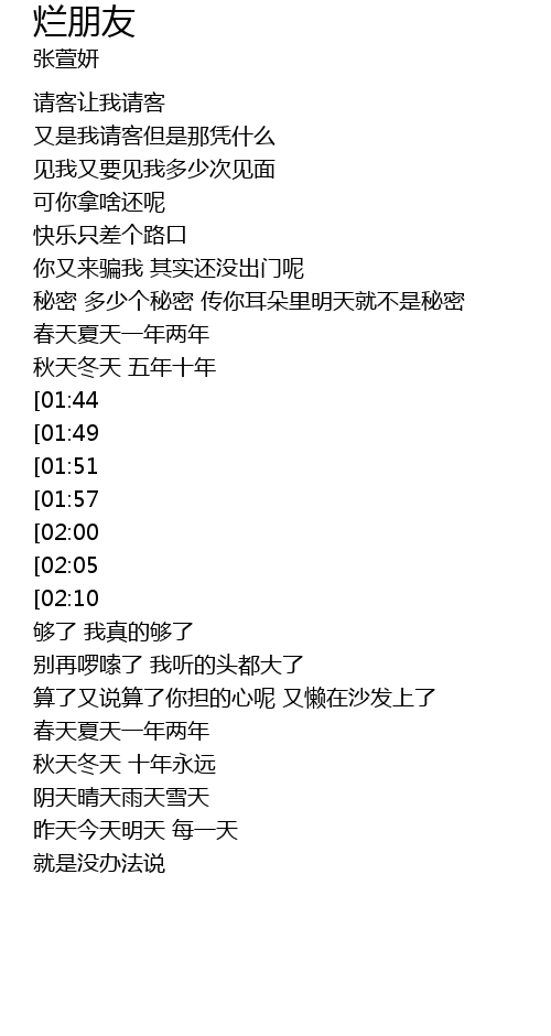 | [02:25] | zuo tian jin tian ming tian mei yi tian |
